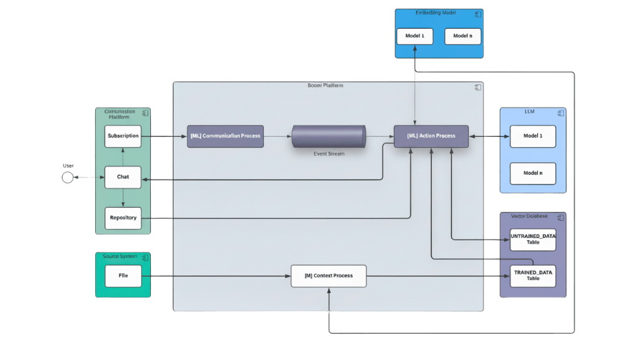 - [ML] Communication Process: Handles all incoming user messages from the communication platform and pushes them into the Event Stream for asynchronous processing.