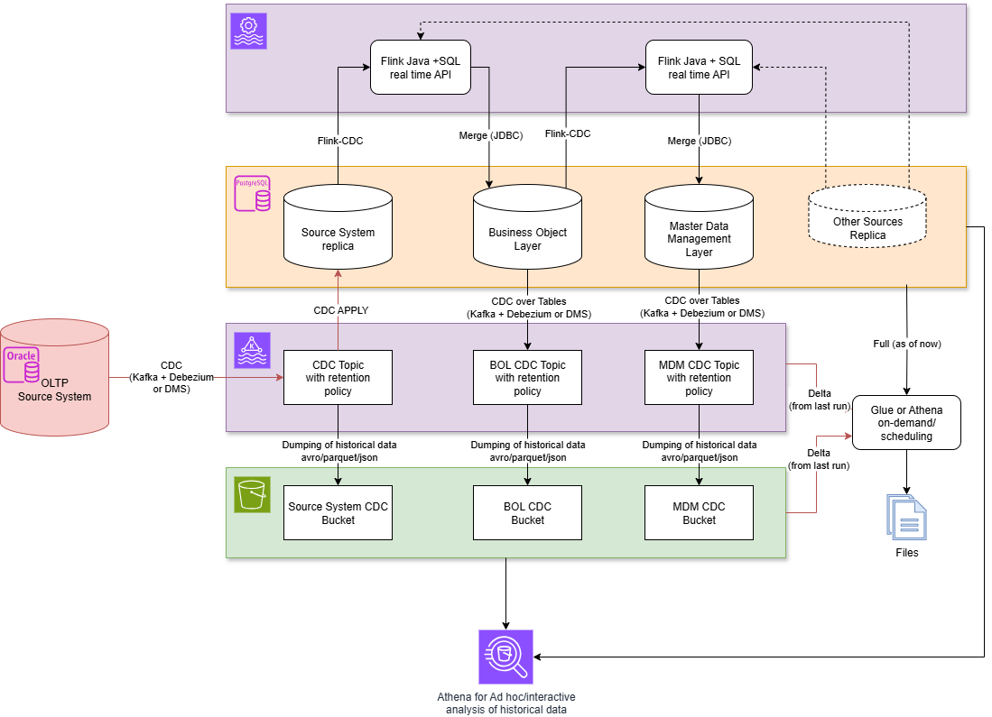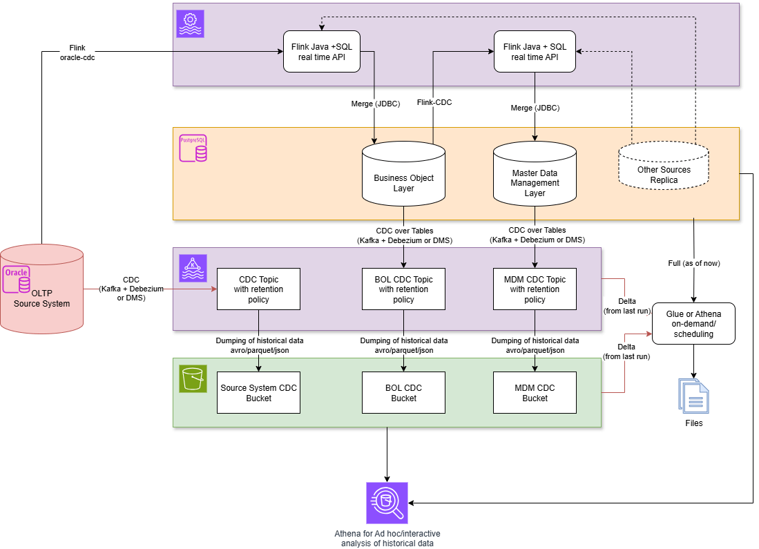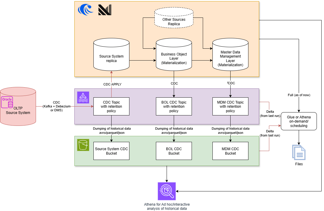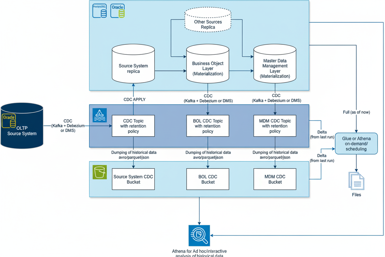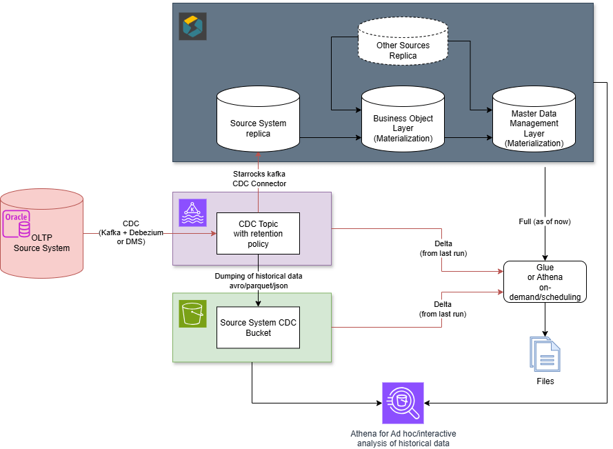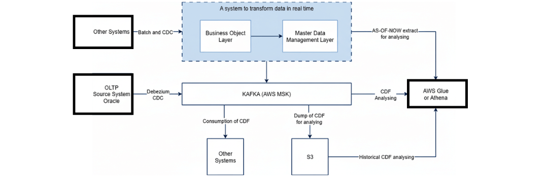 - CDC pipelines: If source systems are not directly supported (e.g., Oracle), a CDC layer (Debezium/AWS DMS → Kafka) is necessary.